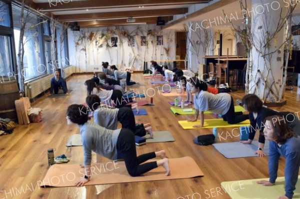 心も体もリフレッシュ 池田ワイン城でヨガ講座(