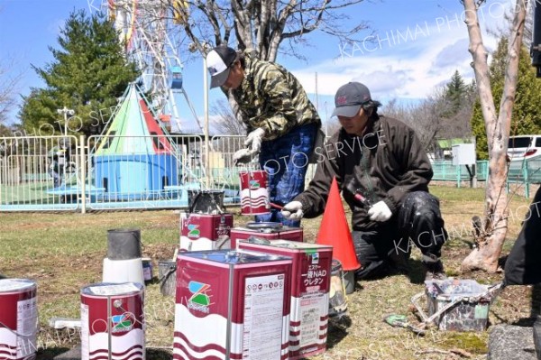 獣舎や遊具、プロの技でピカピカに 動物園で塗装奉仕