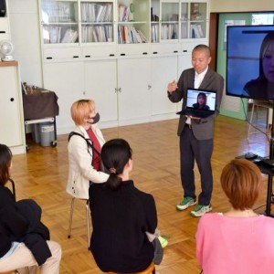 鹿追瓜幕中学校で都留文科大学の学生がオンラインで保護者と交流