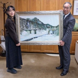 町にアーチ橋の油彩画を寄贈