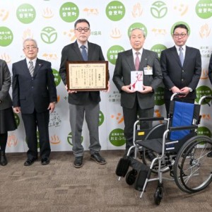 町に車いす5台寄贈 音更建設関連企業協会