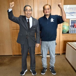 全日本ジュニアでの活躍誓う フルコンタクトカラテの葵塾と鈴木道場の選手たちが表敬訪問