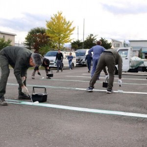 福祉センター駐車場のラインを補修 清水町商工会工業部会