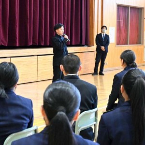 帯北チア部が講師 勇足中で出前授業