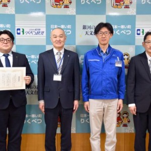 陸別町が萩原建設工業に感謝状
