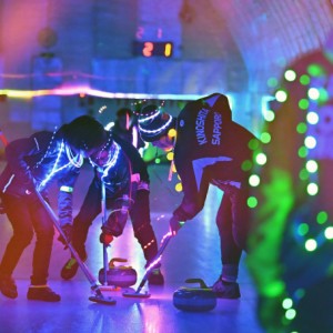 選手もストーンもピカピカ、「暗闇カーリング」日本初開催 カールプレックスおびひろ