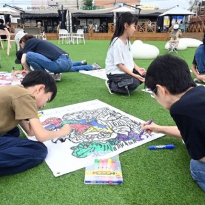 藤丸パークで「ごちゃまぜアート」 色鮮やか共同作品