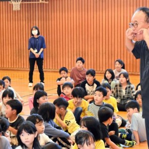 兵庫県稲美合唱団の椿野代表が児童ら合唱指導 音更
