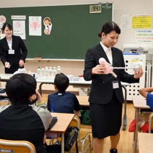帯大谷短大看護学科の学生が先生役 音更柳町小児童に保健体育授業