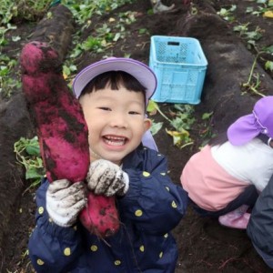 池田保育園の園児がサツマイモ掘り