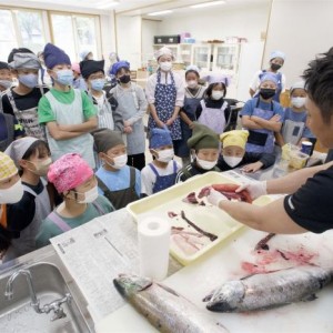 秋サケの三枚おろしにも挑戦 大樹小で食育学習