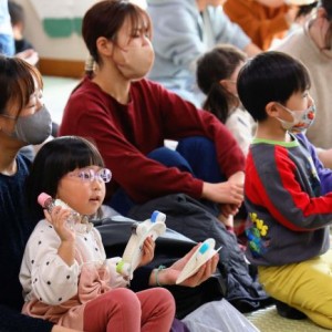 演奏と一体に手作り楽器鳴らす 「ひがしの風コンサート」親子で楽しむ