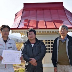 芽室伏美の「地域の守り神」の祠塗装 町内会が高堂建設に感謝状