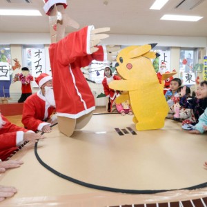 トントン相撲でサンタと勝負! プラザ六中でクリスマスイベント