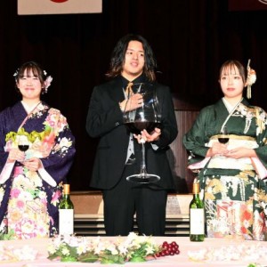 2005年産の十勝ワインで乾杯! 池田町はたちのつどいに34人