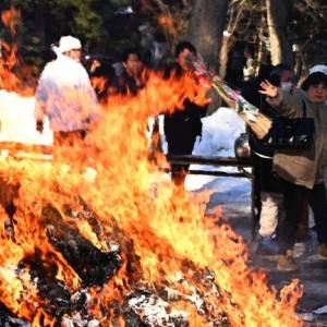 燃え上がる炎に無病息災祈る 帯廣神社どんど焼き