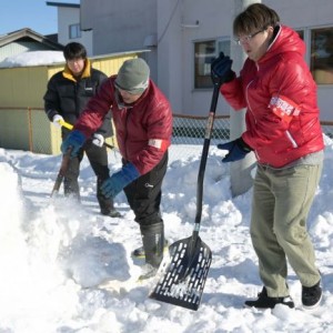 足寄町職員労組がコミバス停留所で除雪奉仕