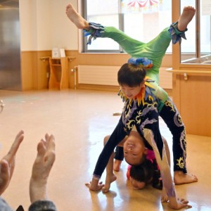 「曲がる芸術」曾祖母へ届け 帯広出身の一家が特養でサーカス披露