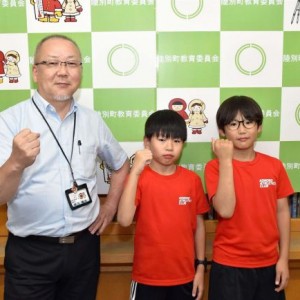 「道大会で自己新うれしい」 豊頃陸上少年団の2人が教育長に結果報告
