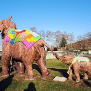 • 「ナウマンゾウの親子」に恒例のマフラー 幕別・忠類記念館~こぼれ話