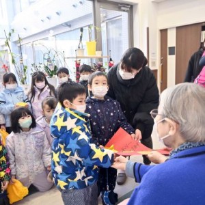 • お年寄りに「メリークリスマス!」 第一いずみ幼稚園児がコムニの里訪問