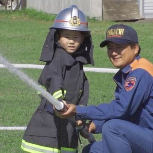園児が放水体験や避難訓練 本別で幼年防火フェス