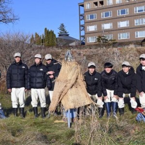 帯工生がタンチョウの給餌台設置